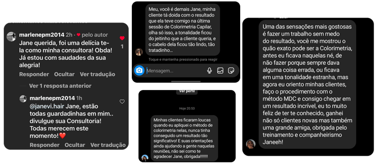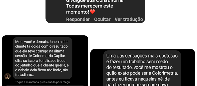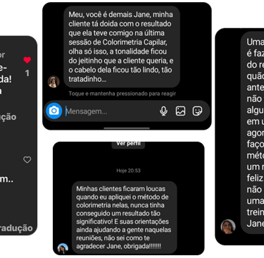 Veja o que dizem sobre os ensinamentos de Colorimetria Capilar que a Jane Alves têm proporcionado: